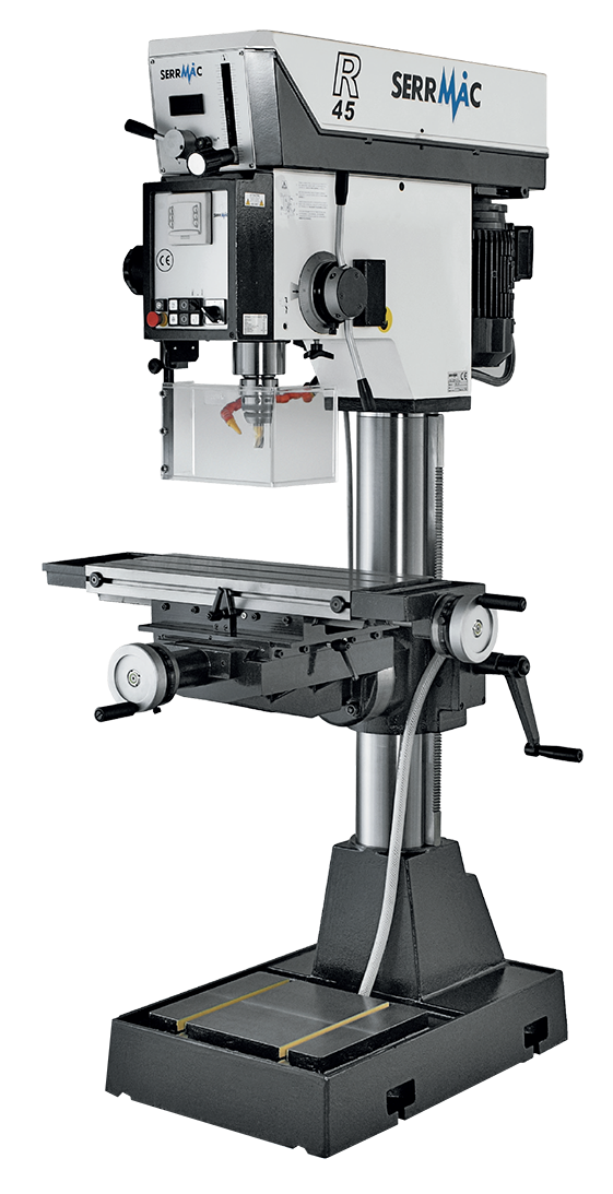 A High-Tech tartomány fúró-maró gépe 3 megjelenített tengellyel és manuálisan programozható ciklusokkal rendelkezik, elektronikus sebességszabályozóval, vektor inverteren keresztül.